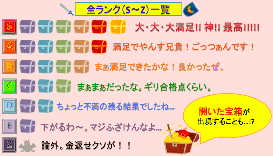 ※基本はS〜Eの6段階評価。振替店・ぼったくり店などは例外でZ評価。